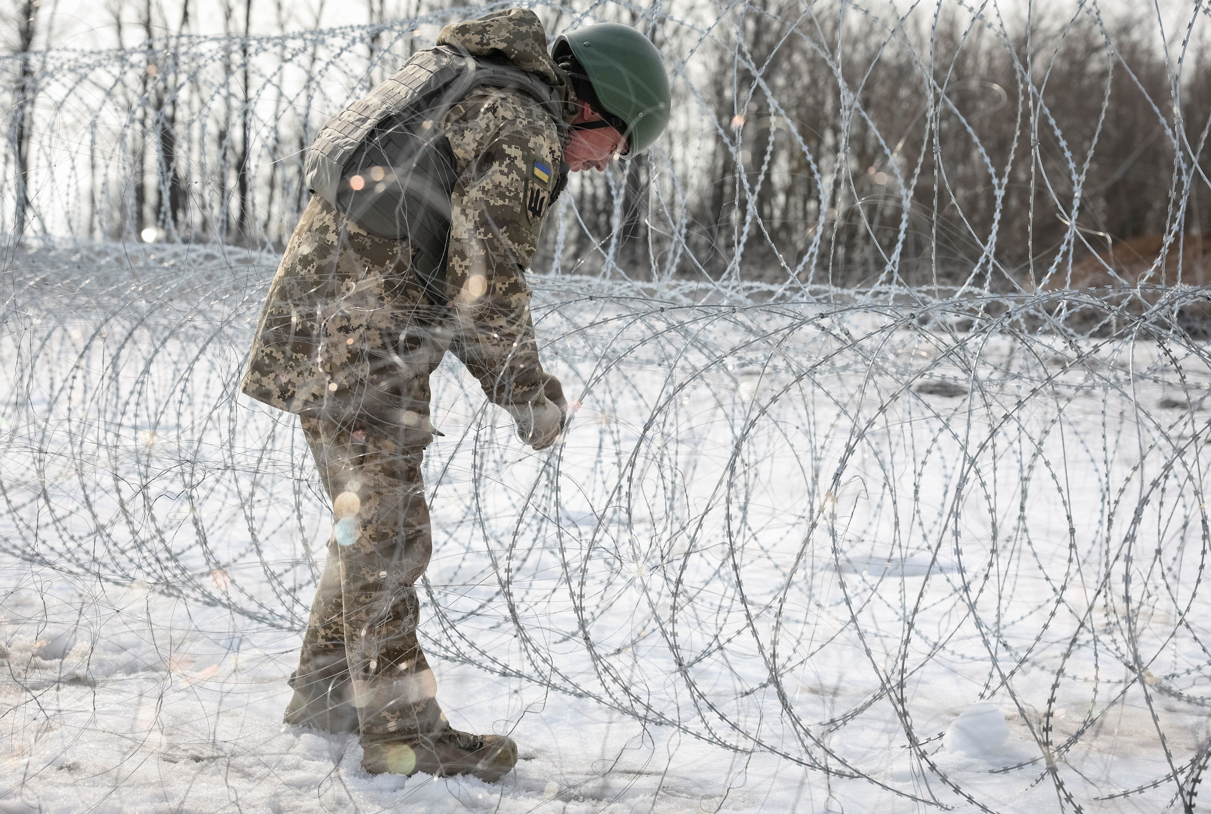 In pictures: Ukrainian soldiers install barbed wire near a front line near Kupiansk